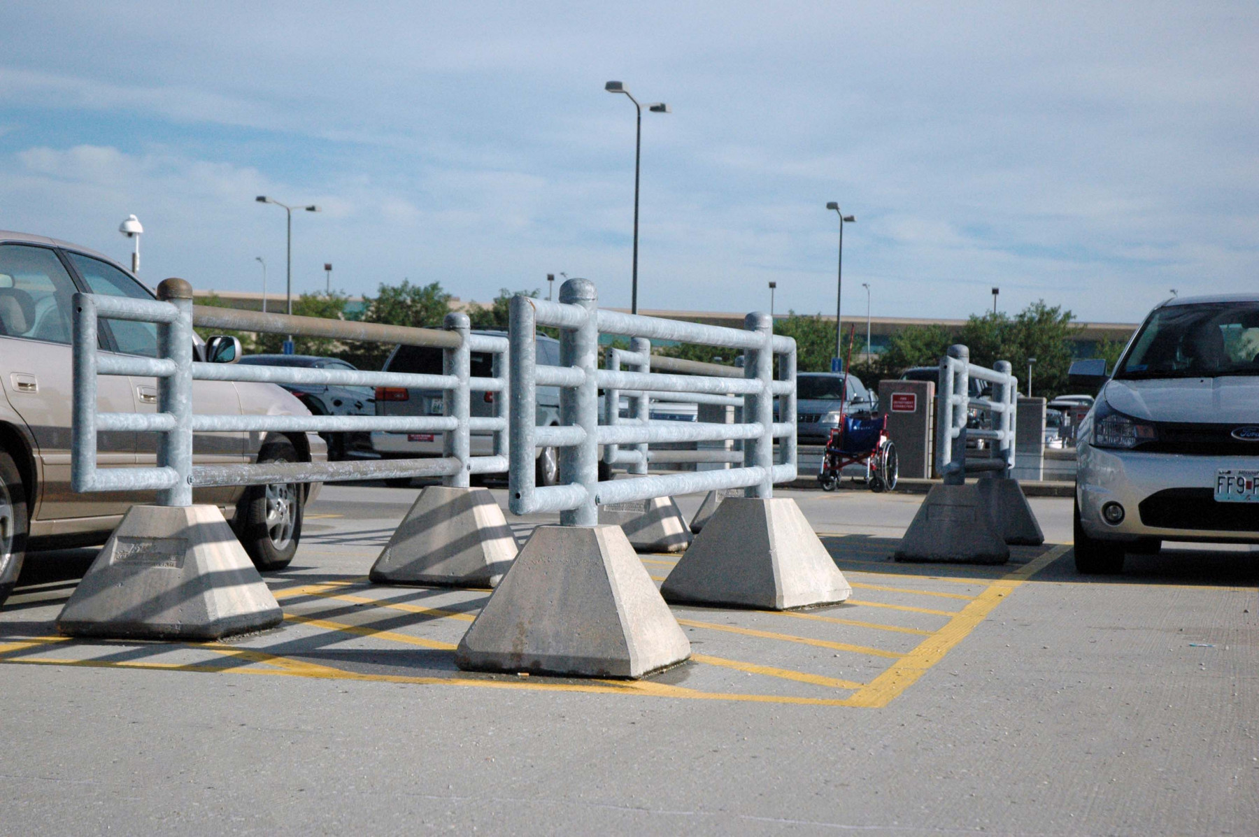 Complete traffic barrier systems that are ideal for creating protected roadways and pedestrian paths. Learn More Theft Prevention for Vehicles Easy Setup Easy Storage 10', 12'-6", and Custom Configurations Design has an integrated pre-cast concrete base with galvanized steel divider that can be customized. The galvanized steel can be detached from the concrete footings for easy storage. Capable of being moved by forklift for easy configuration and re-configuration. Aesthetically pleasing and allows for more transparent less invasive divider. Footing with replaceable base.